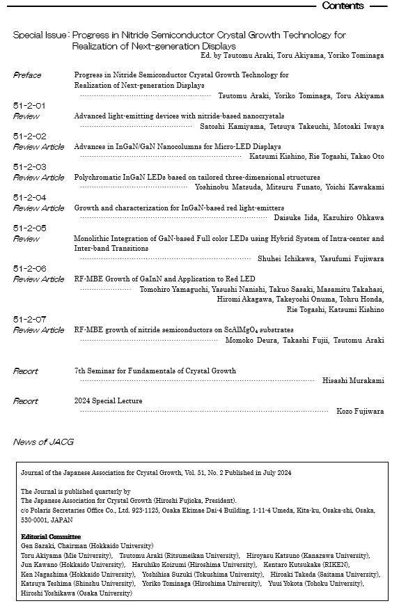 >>Journal of the Japanese Association for Crystal Growth, Vol.51, No.2, 2024
